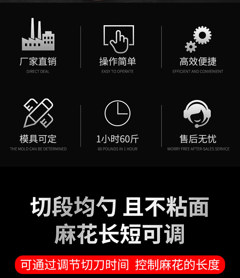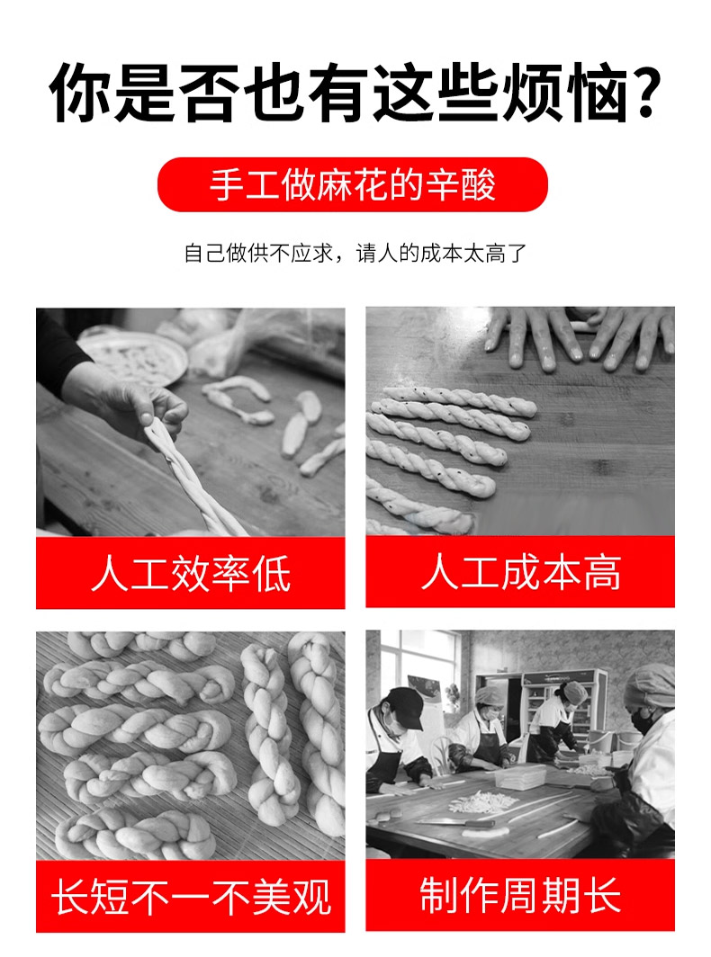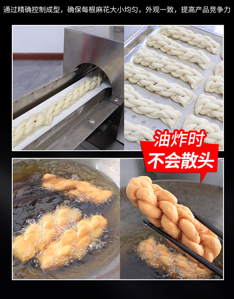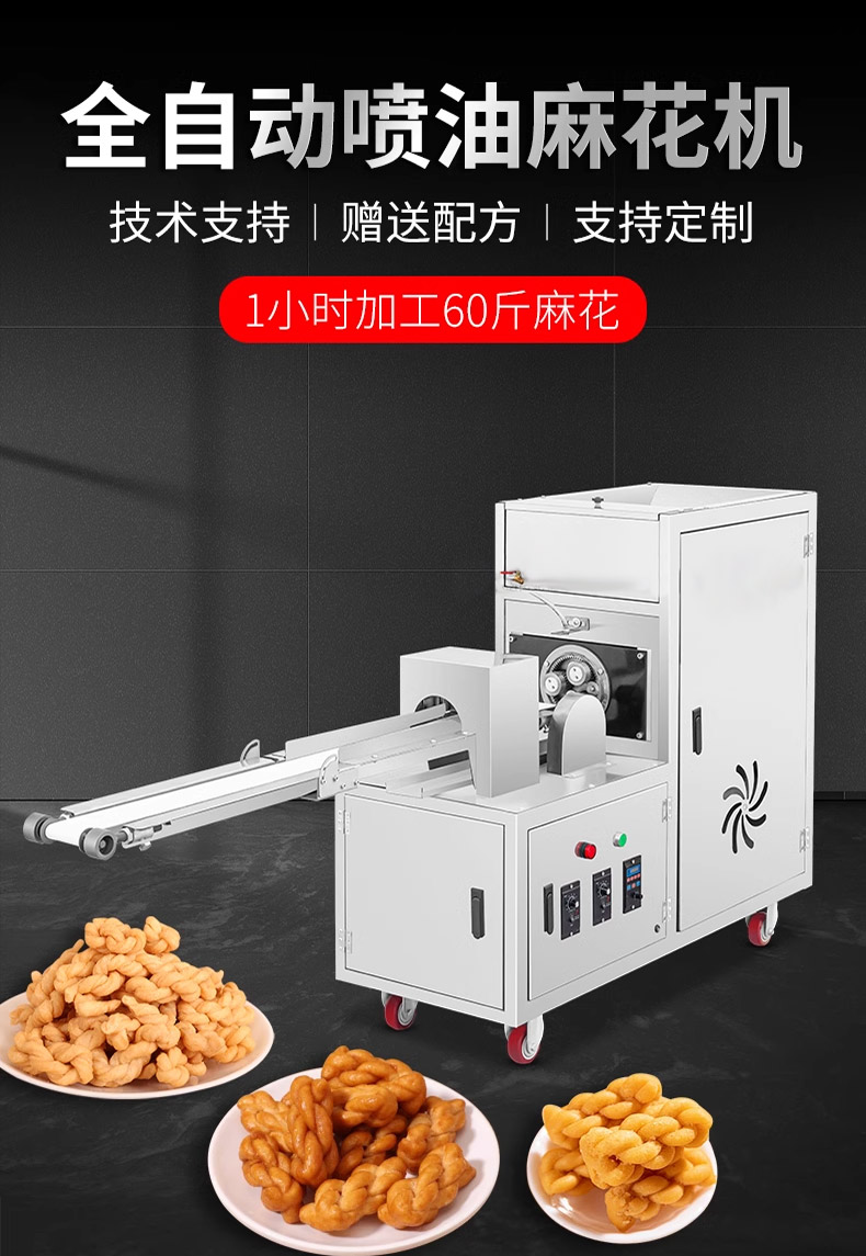 XZ-MH-200麻花機,技術支持、贈送配方、支持定製,1小時加工60斤麻花。切段均勺、且不粘麵(miàn),麻花長短可調。可(kě)通過調節(jiē)切刀時間、控製麻花的長度。通過精確(què)控製成(chéng)型,確保每根麻花大小均勻,外觀一致,提高產品競爭(zhēng)力。