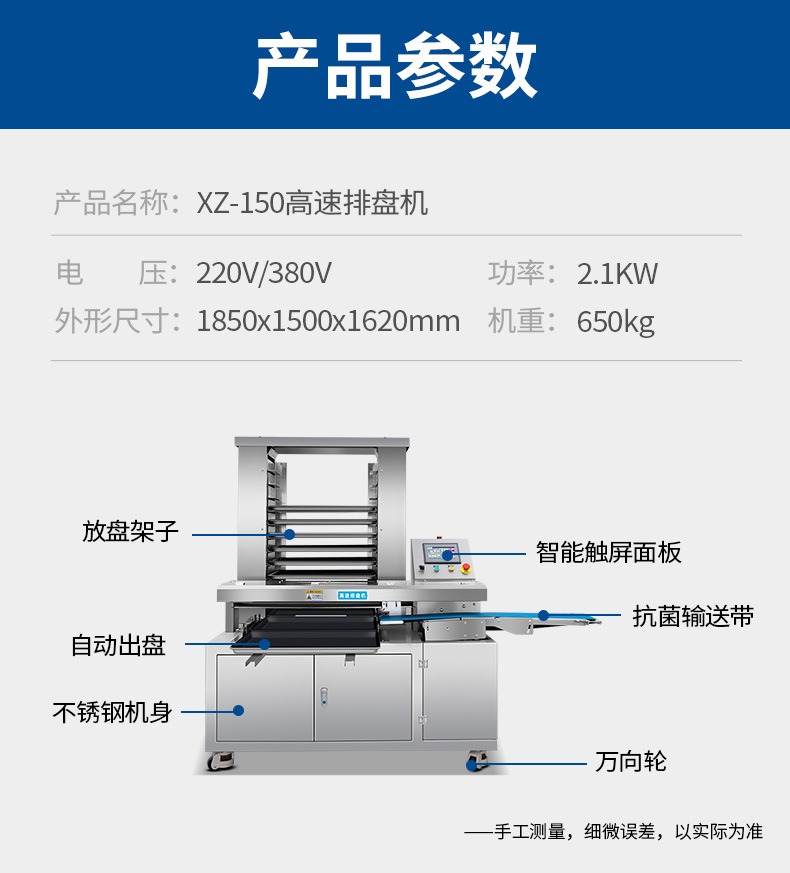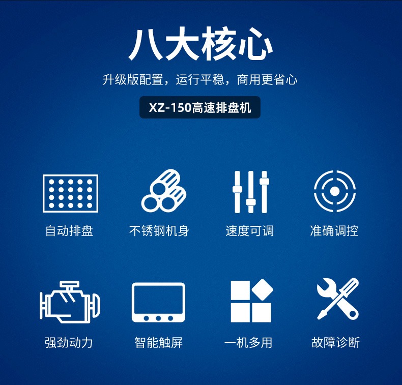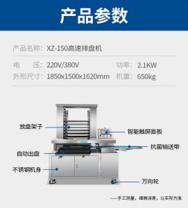 名稱多功能商(shāng)用高(gāo)速排盤機 電源220V/380V 功率2.1KW 產量(liàng) 尺寸1850x1500x1620mm 重量650kg 規格 其他
